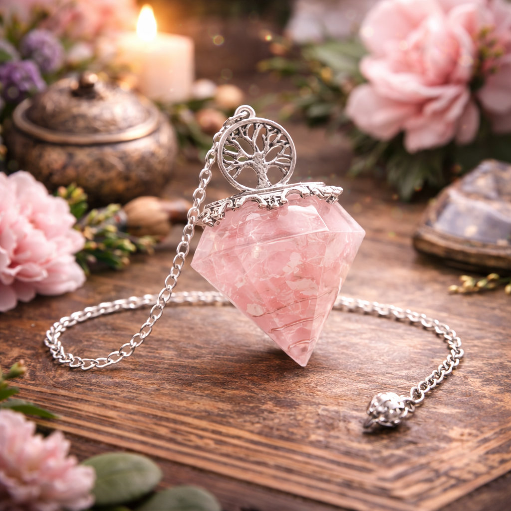 Pendule Arbre de Vie Orgonite - Quartz Rose
