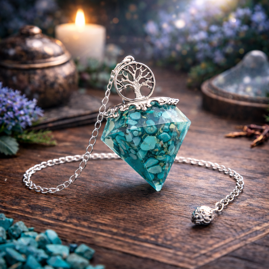 Pendule Arbre de Vie Orgonite - Turquoise