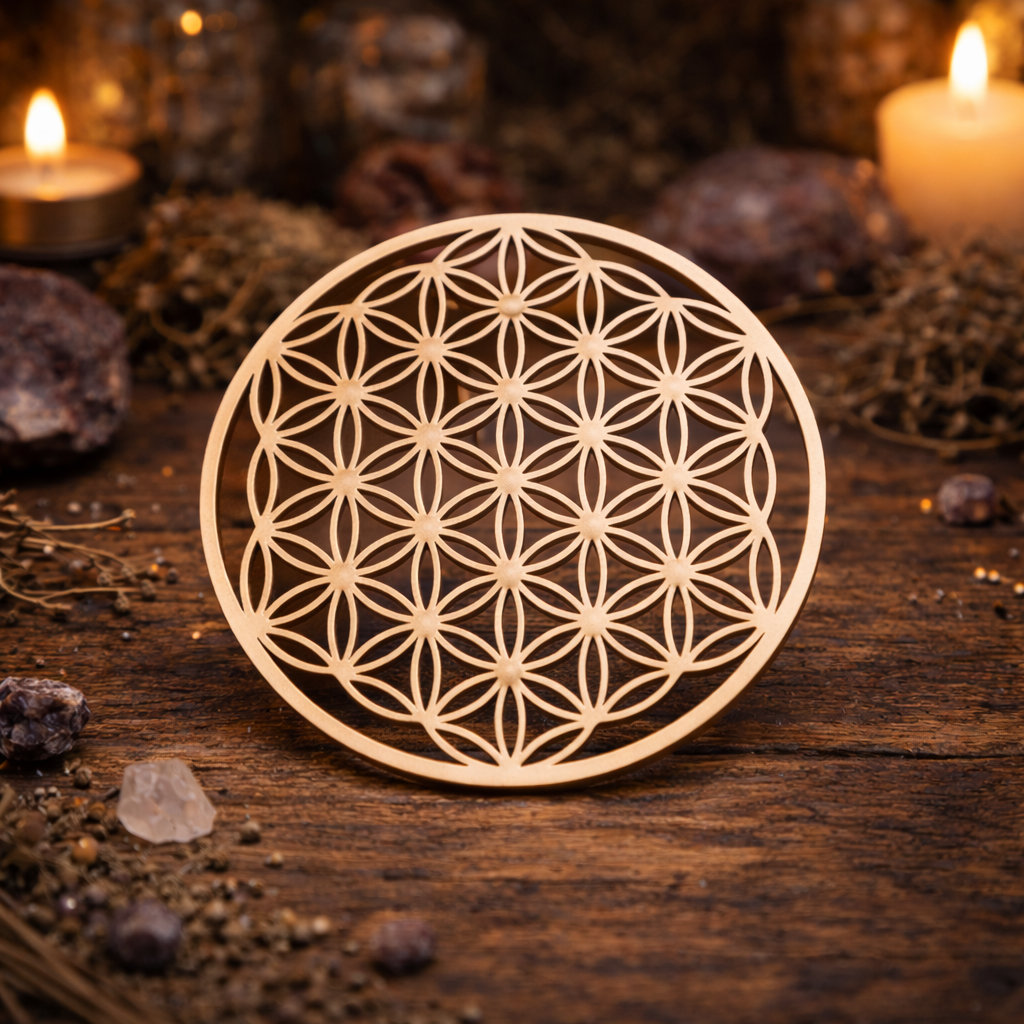 Plaque "Fleur de Vie" XXL en bois (Pour recharger vos pierres et bijoux)
