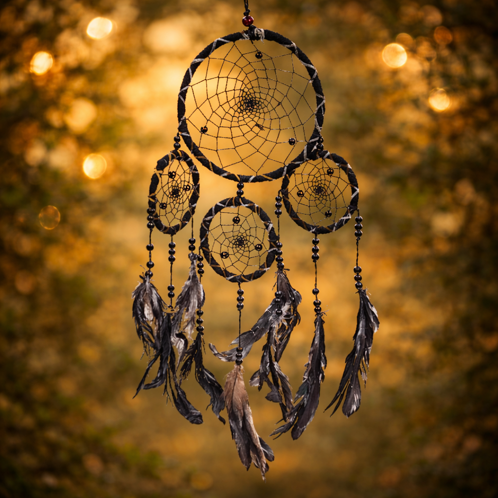 Les Capteurs de rêves (ou Dreamcatchers) empêchent les mauvais rêves d'envahir le sommeil de leur détenteur. Agissant comme un filtre, ils captent les songes envoyés par les esprits, conservent les belles images de la nuit, et brûlent les mauvaises visions aux premières lueurs du jour. A suspendre au-dessus de votre lit.
