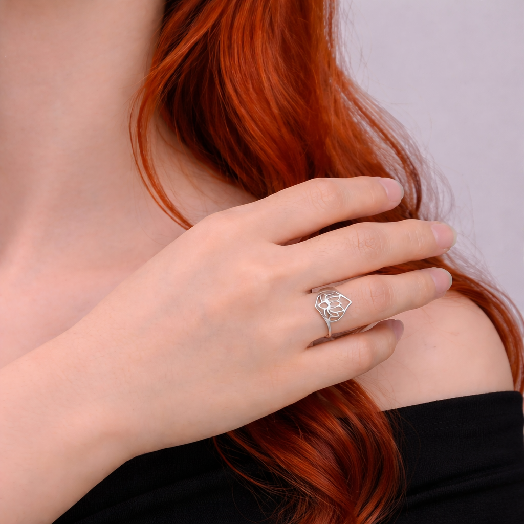 Bague en acier inoxydable, avec motif Fleur de Lotus