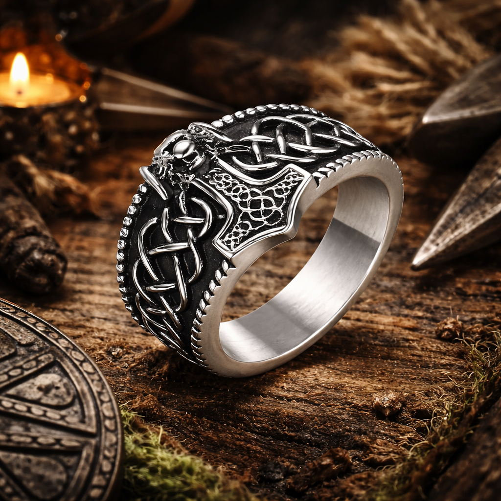Le marteau Mjöllnir est un puissant symbole de protection, de justice et de force dans la culture viking. Il était porté comme talisman par les guerriers scandinaves pour repousser les forces maléfiques et invoquer la faveur des dieux.