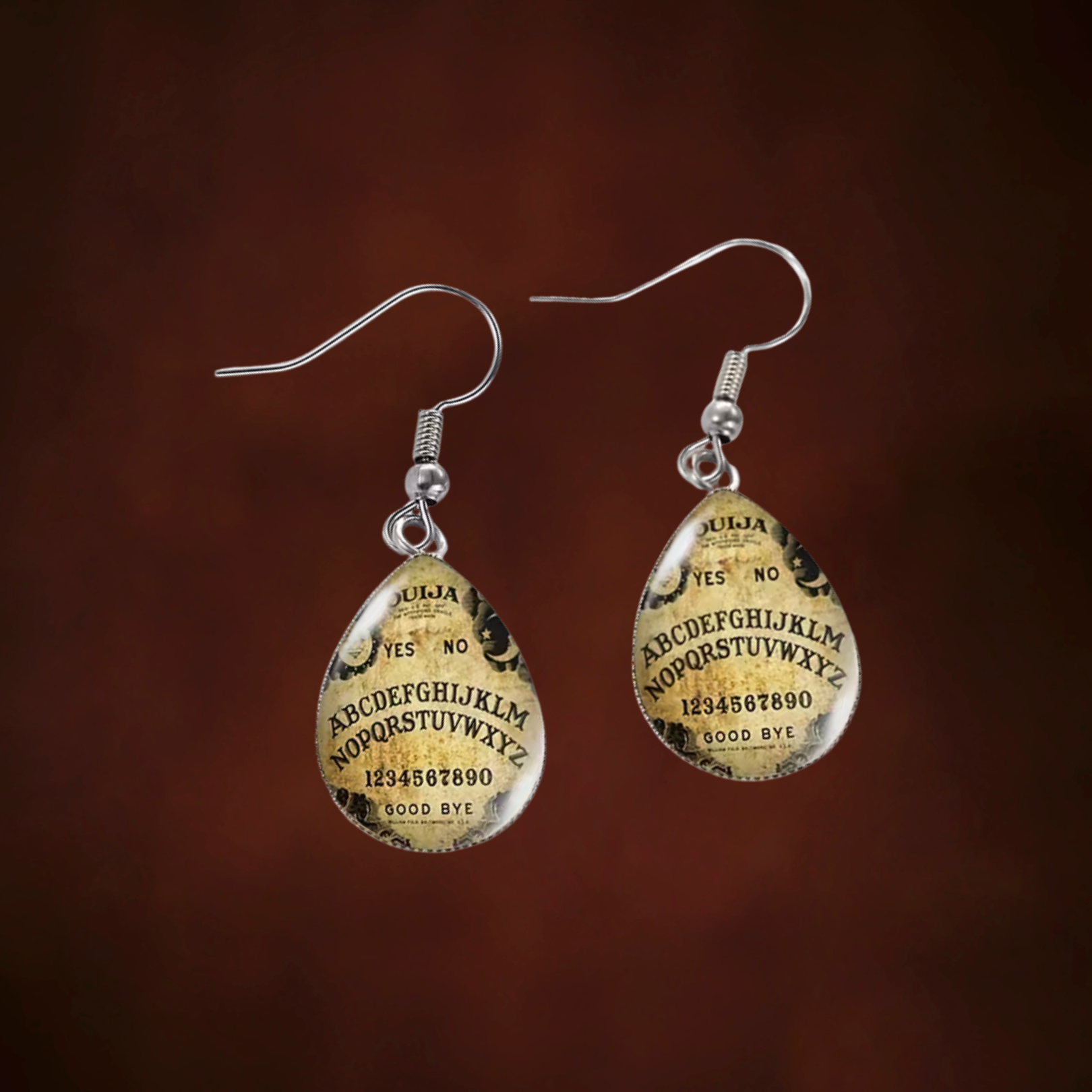 Ces boucles d'oreilles au charme ésotérique reprennent l'esprit des planchettes de Ouija, dans une version élégante et féminine. Réalisées en acier inoxydable, elles résistent parfaitement au temps, tout en restant légères et confortables à porter.