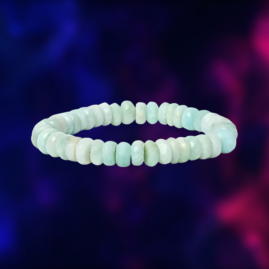 Ce bracelet en Amazonite facettée 8 mm offre une énergie douce et apaisante, sublimée par l'éclat naturel de ses perles lumineuses.