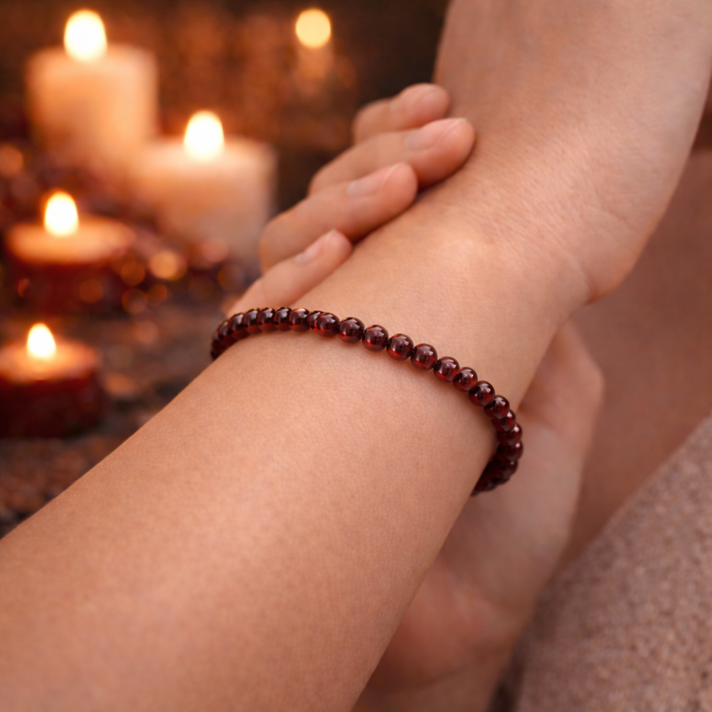 Le Grenat est une pierre d'ancrage et de vitalité. Il aide à retrouver stabilité, motivation et courage lors des périodes de fatigue physique ou émotionnelle. On le connaît pour renforcer la confiance en soi, soutenir l'affirmation personnelle et apporter une énergie chaleureuse qui ravive la passion, la créativité et l'élan intérieur. C'est également une pierre qui encourage la détermination et la persévérance, tout en aidant à libérer les blocages émotionnels liés à la peur ou au découragement.