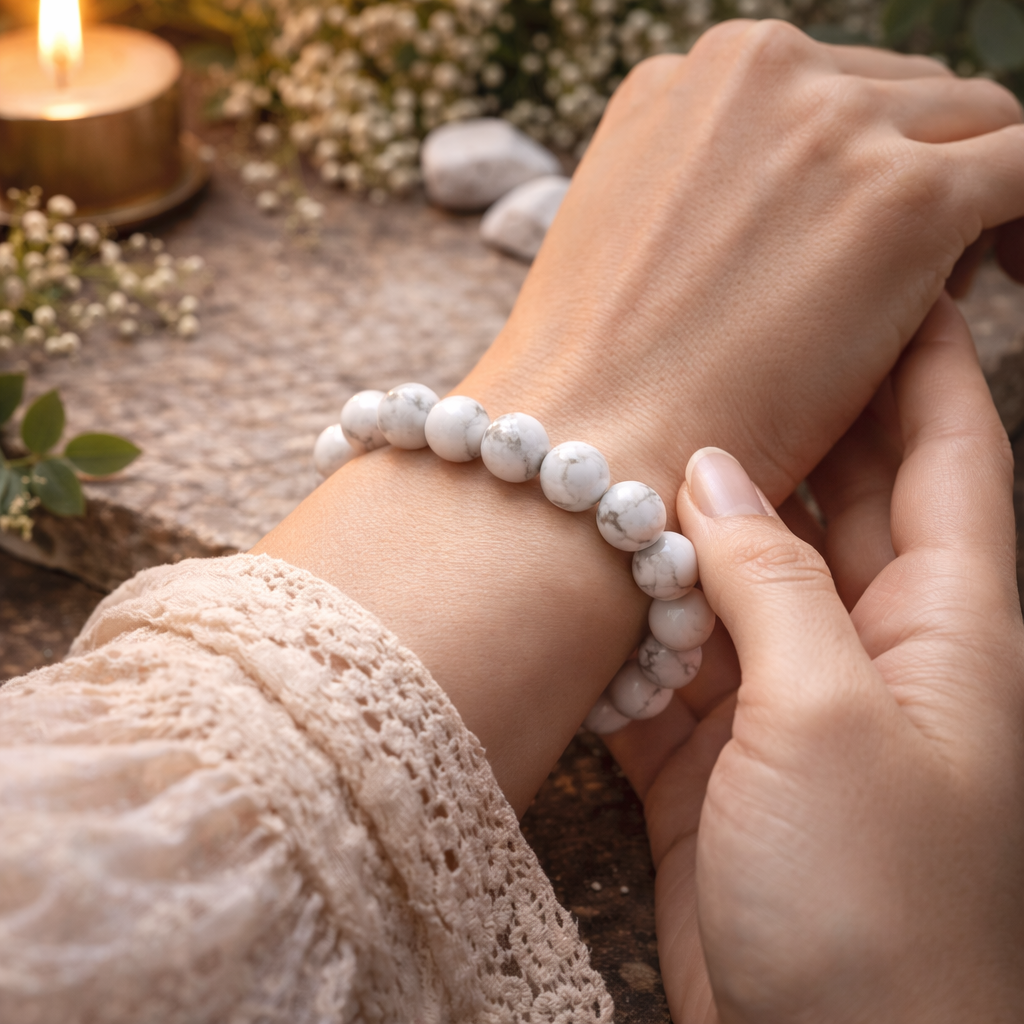 Un magnifique bracelet élastiqué en Howlite (perles 8mm)