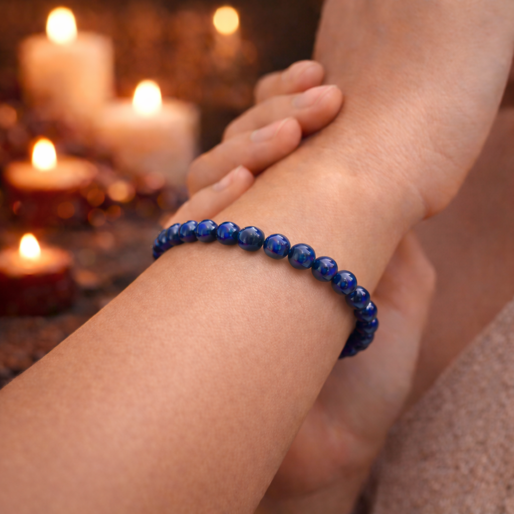 Un magnifique bracelet élastiqué en Lapis Lazuli (perles 6mm)