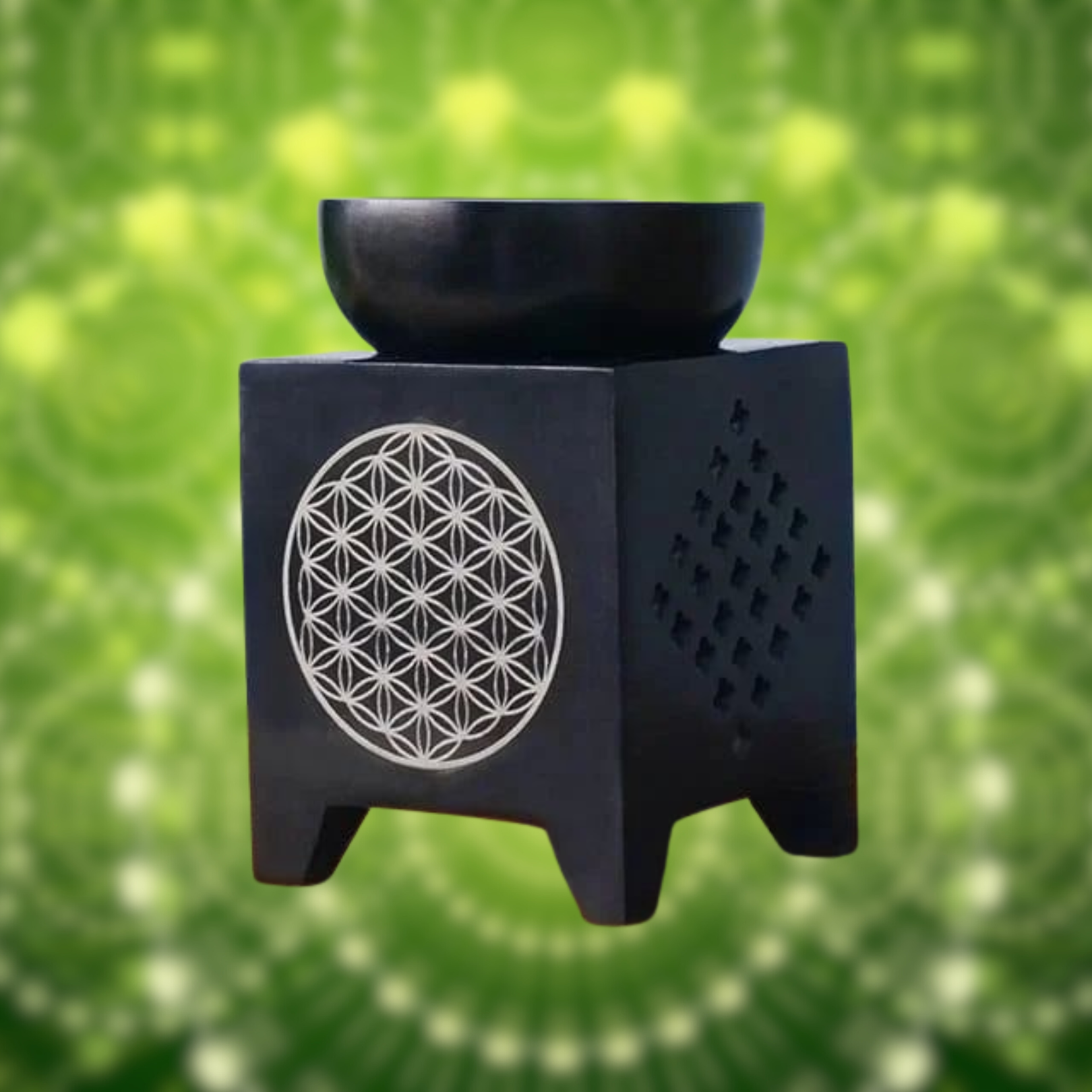 Ce magnifique brûle-parfum en pierre à savon est idéal pour vos huiles à brûler et vos fondants parfumés. Son design raffiné, orné du symbole sacré de la Fleur de Vie, en fait bien plus qu'un simple accessoire : c'est un véritable objet énergétique, décoratif et fonctionnel à la fois.