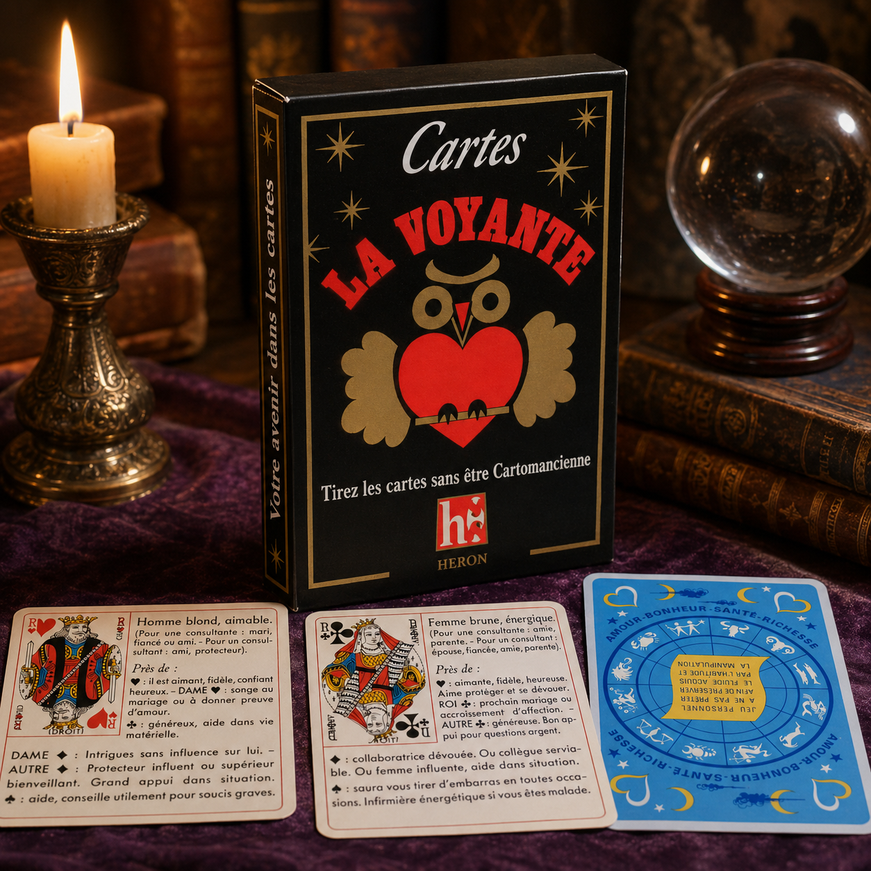 La Voyante est un jeu de cartes idéal pour tous ceux et toutes celles qui souhaitent trouver des réponses à leurs interrogations : Amour, Santé, Richesses. En effet, il n'est désormais plus besoin d'être une Cartomancienne pour lire l'avenir dans les cartes.