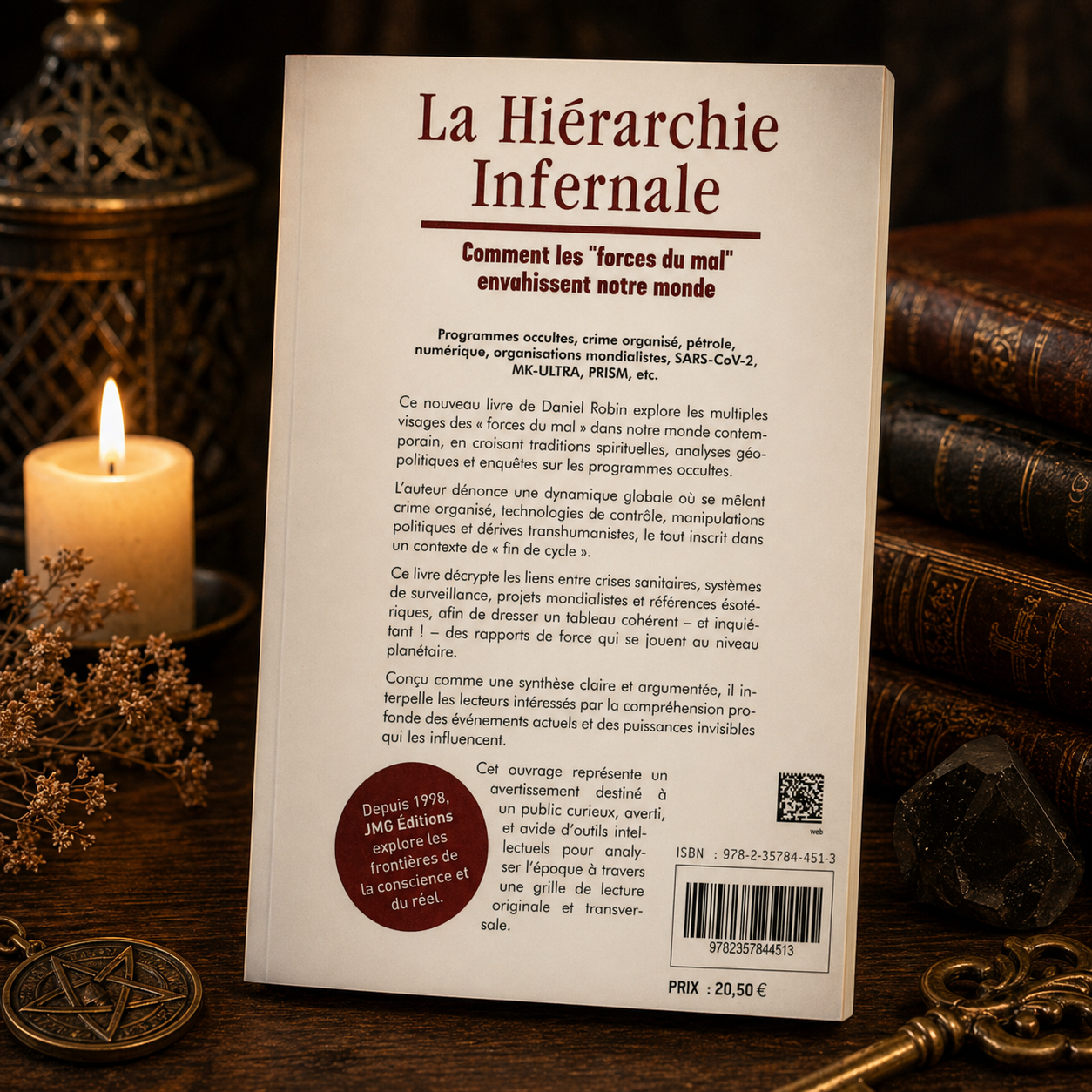Ce nouveau livre de Daniel Robin explore les multiples visages des « forces du mal » dans notre monde contemporain, en croisant traditions spirituelles, analyses géopolitiques et enquêtes sur les programmes occultes. L'auteur dénonce une dynamique globale où se mêlent crime organisé, technologies de contrôle, manipulations politiques et dérives transhumanistes, le tout inscrit dans un contexte de « fin de cycle ». Ce livre décrypte les liens entre crises sanitaires, systèmes de surveillance, projets mondialistes et références ésotériques, afin de dresser un tableau cohérent – et inquiétant ! – des rapports de force qui se jouent au niveau planétaire.