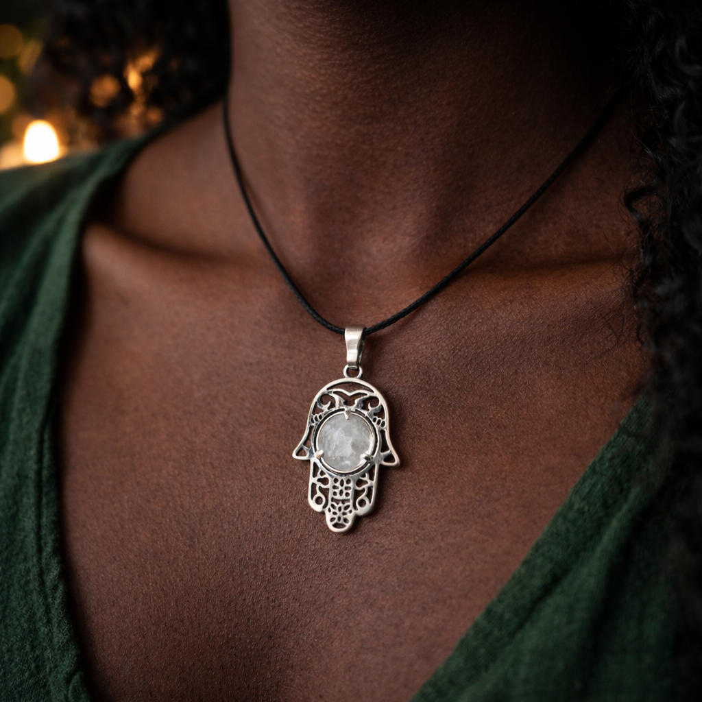 La Main de Fatima ou "Khamsa", est un symbole de protection contre le mauvais œil, de chance et de bénédiction. Présente dans les cultures musulmane et juive, elle est associée à Fatima Zahra ou à Miriam. Elle se représente comme une main ouverte, souvent ornée d’un œil, et s’utilise en bijoux, décorations ou amulettes pour attirer la chance et repousser les énergies négatives.